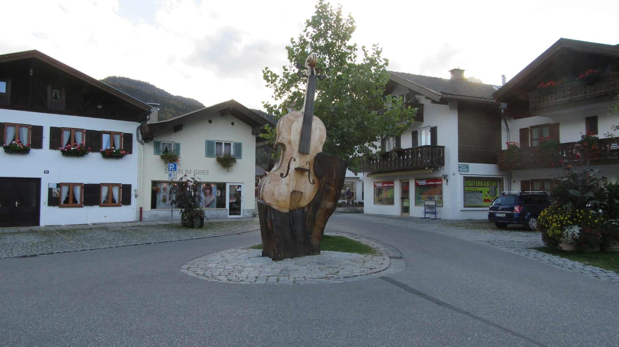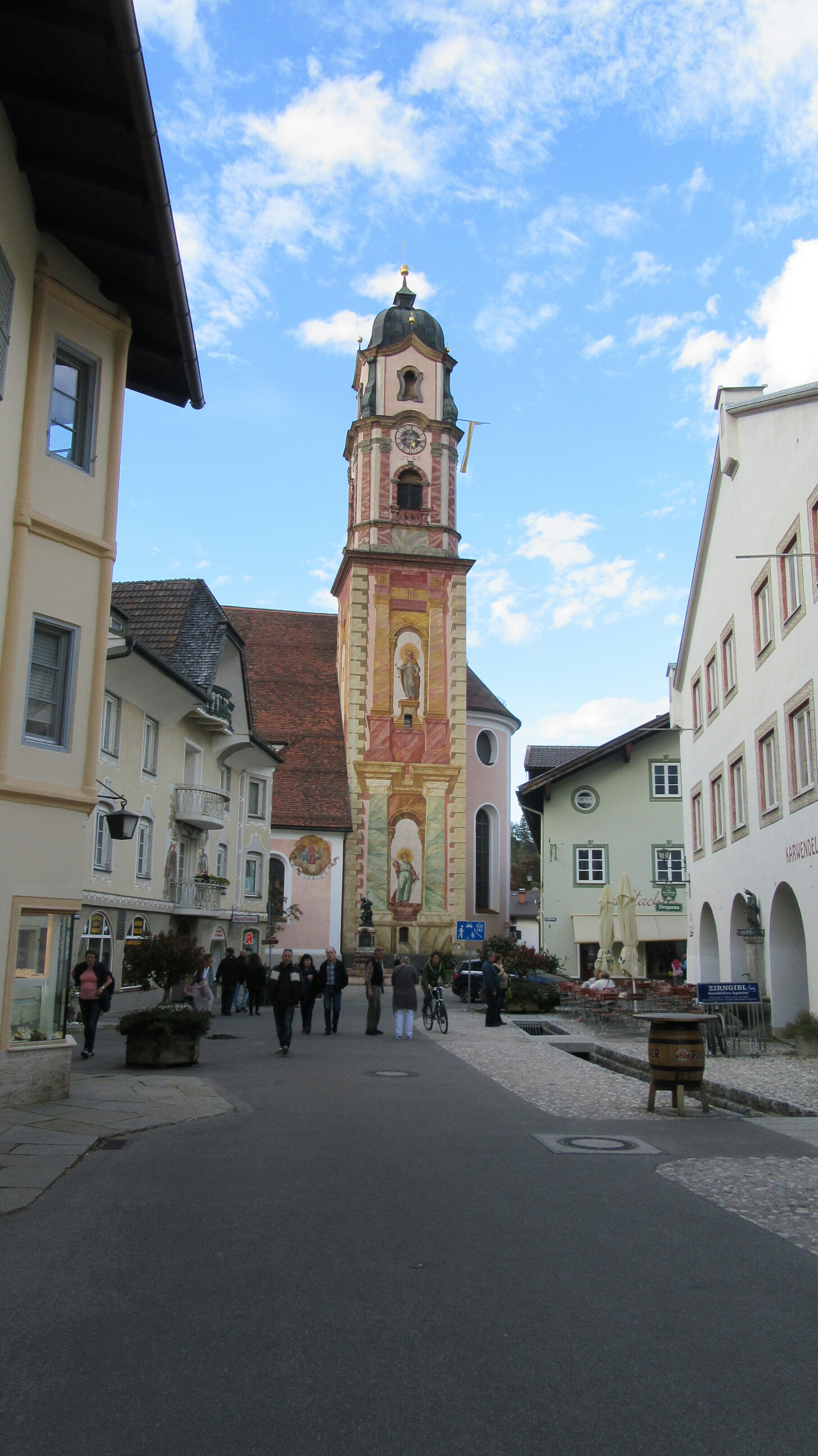 So I finally left Munich today, and took the train to the southern border town of Mittenwald. The town is maybe only a mile or less from the border with Austria, but is a beautiful town reminiscent of Swiss chalets, yodeling and annoying Ricola commercials. I didn’t do anything except wander around and get some gelato as it was somewhat late when I arrived, it was quite memorable just walking through, the town is famous for its violins, and boy does it show. It is also a very very very Catholic town, with crucifixes all over, some even just standing up on posts on the roadside. Many of the buildings also have large Christianity themed paintings of Christ, the saints, doves, cherubs etc. decorated on them.