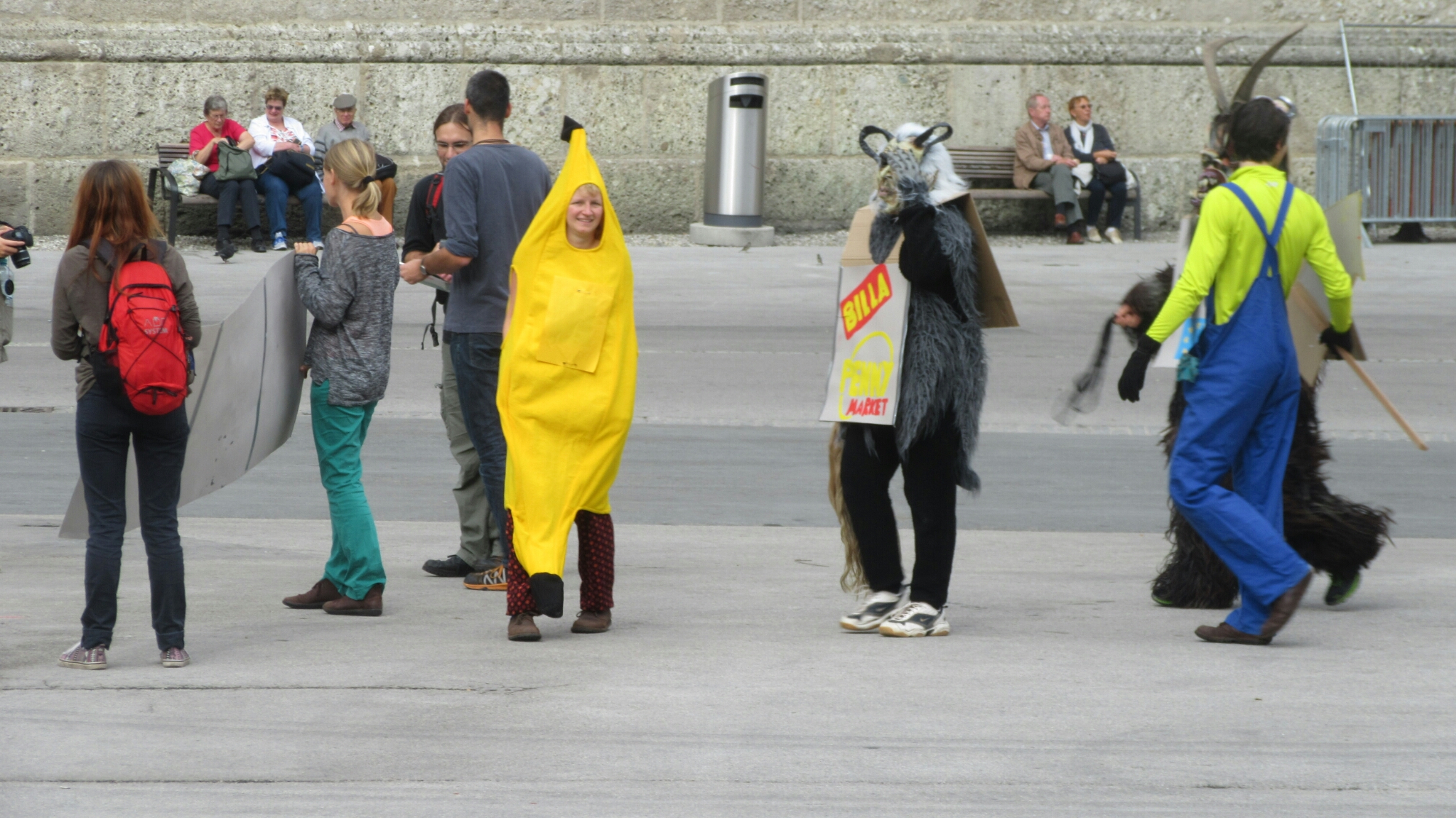 Next I saw the Salzburg cathedral which was nice, but I didn’t go inside. Also the was some weird demonstration of some people dressed as fruits and some in monster outfits who wee chasing the fruits, it was some strange enviromental awareness thing. Lots this stuff going on it seems. Next on the to do list was Stiftsbäckerei St. Peter. Salzburg’s oldest bakery which has been there for more than 700 years, still using the old wood oven…and plenty of modern machinery as well. I got a tasty bread roll and went to the nearby cemetery which has catacombs built high up in the vertical cliffside. Turned out to be not as cool as I thought, but still neat.