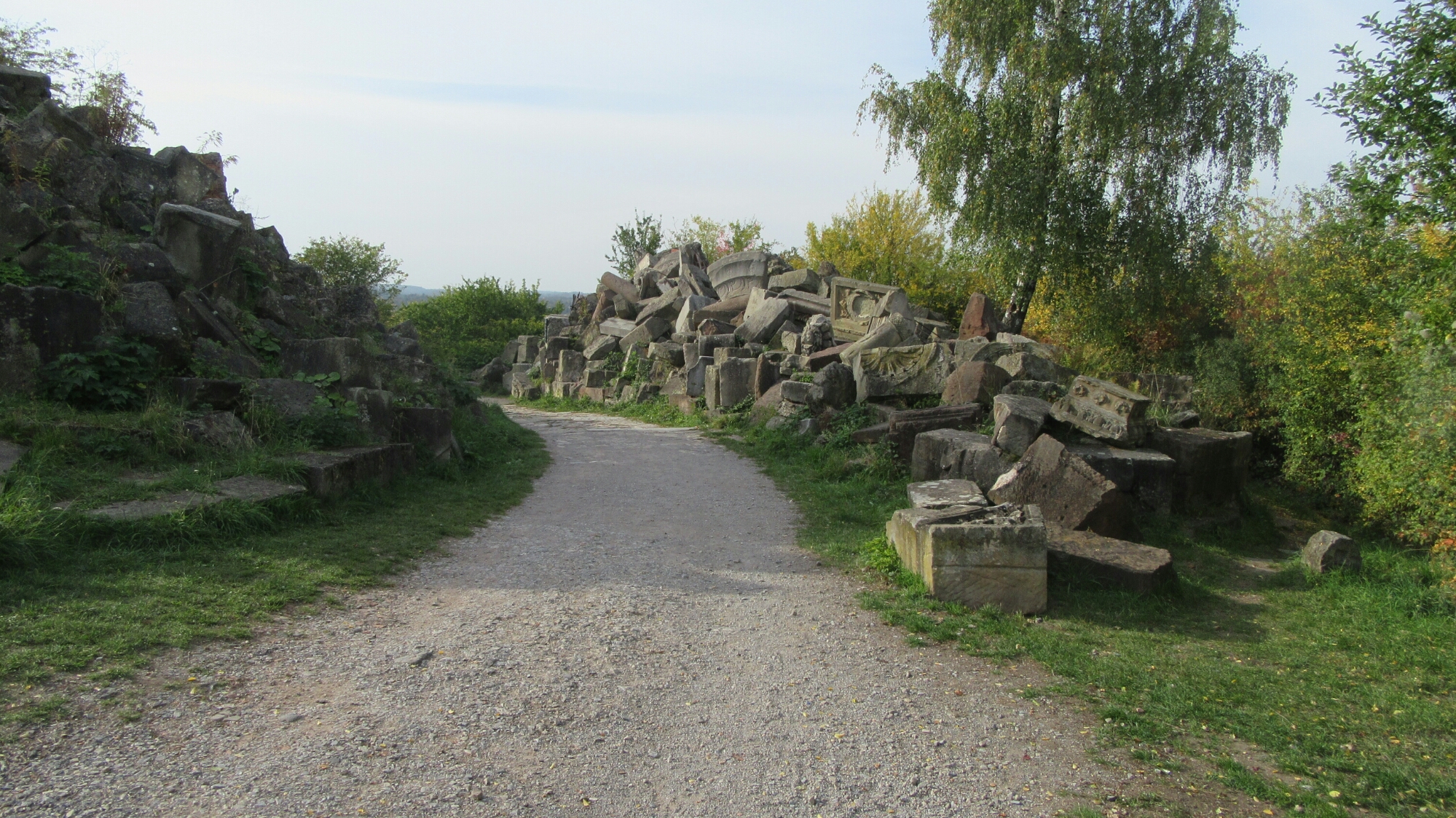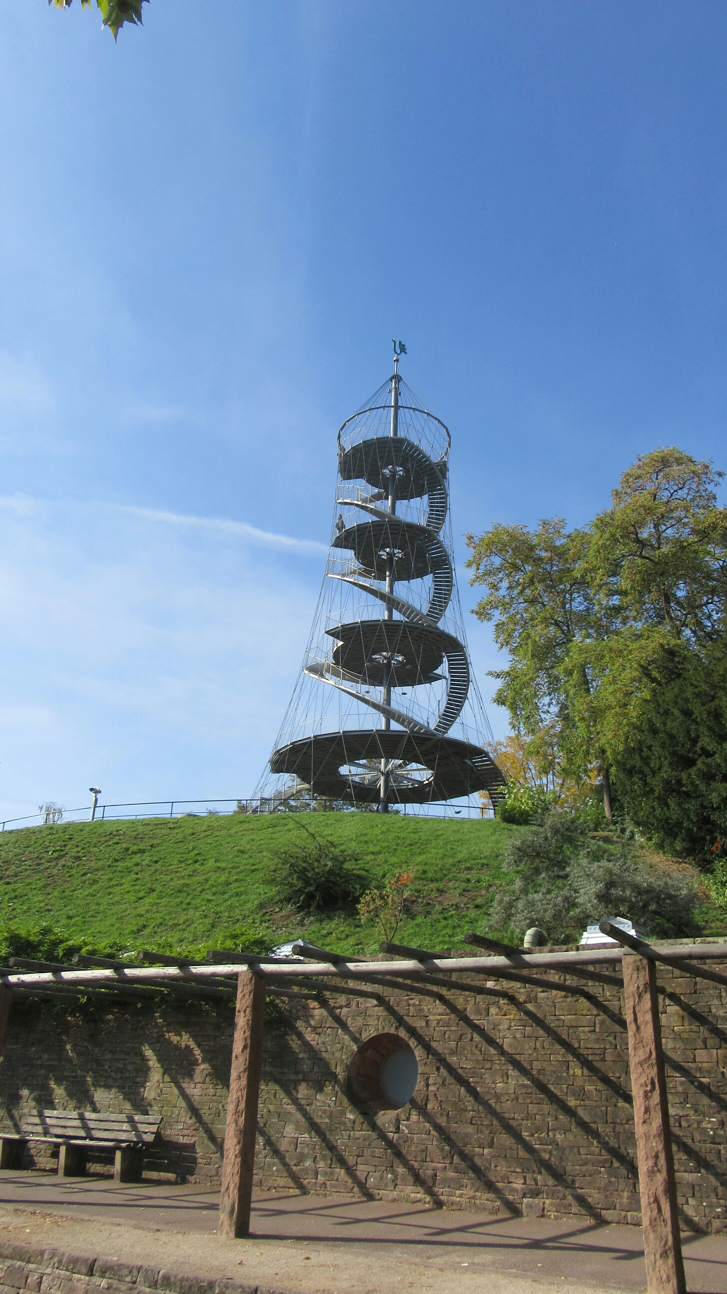 I kept going down the long street to the outskirts of the city (a very long walk) up hill. Then more uphill, lots and lots of up hill-ness along a highway. Finally atop the main hill there is another large hill. You go up a long spiral path up hill to the center that takes you to the top where you will find large piles of busted rocks and what looks like ruins. Because it is. The whole entire hill up top is a massively huge 1.5 million cubic meter pile of rubble from the city of Stuttgart called Birkenkopf (birch head). As with everywhere else, the city was heavily damaged in the war and over the course of 4 years the ruins and rubble was piled up into a mountain and covered in dirt and trees. Though I kinda wish it wasn’t covered with dirt and trees as that would be quite a sight. So yes, today there was a giant pile of waste. Bwahaha. There are others of these around Germany. The ruins had to go somewhere, so why not turn it into a park. What you see up top is only a tiny fraction of what is under.