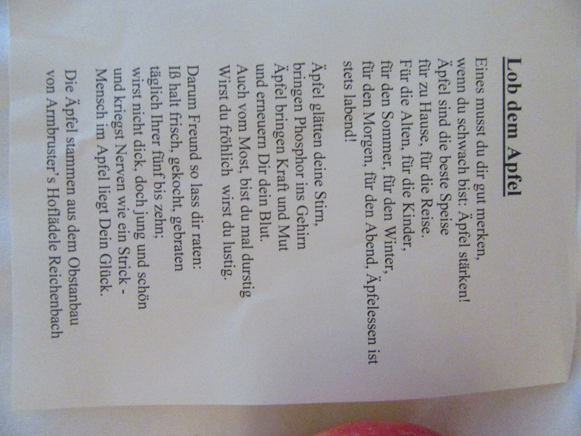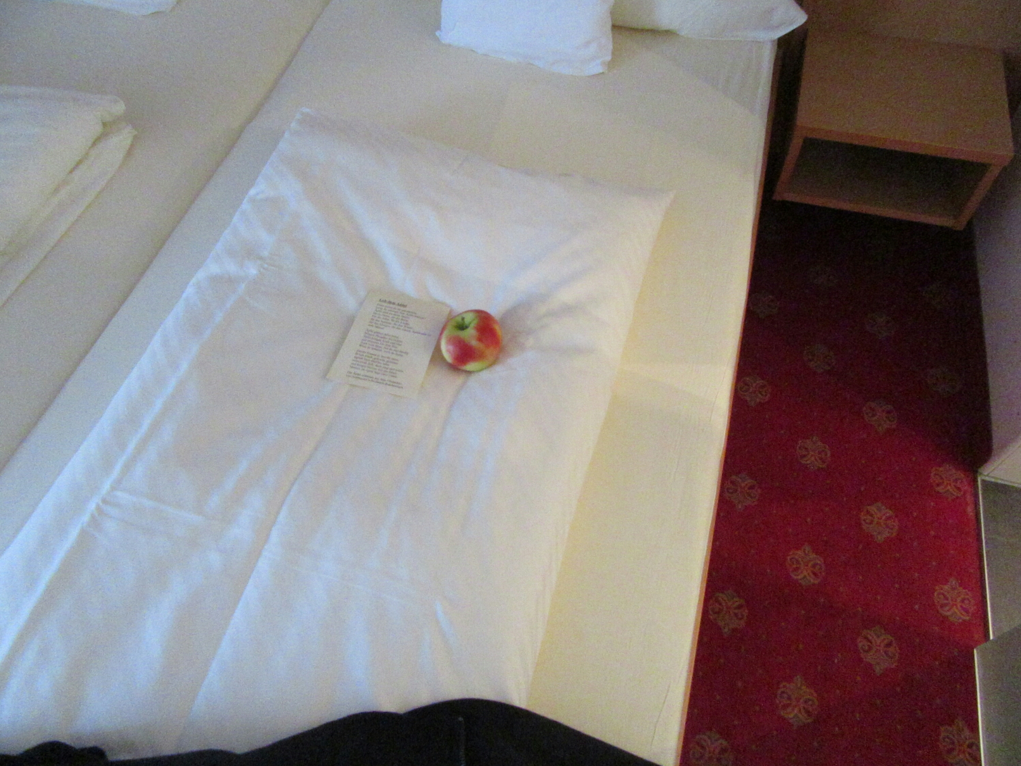 Strangely, many many shops and restaurants are closed on Tuesdays and Wednesdays, including my inn, which left a note on the window saying my room key was in a box hidden behind the menu sign. I do not know why they are closed but I will try and find out. It is defnitely not the mandatory country-wide Ladenschlussgesetz law saying they gotta be closed on Sundays. This is also the first place I have stayed at which left food (apples) on the beds with a little poem about the joys and benefits of eatting apples. (Which yes! I did actually eat!) The poem is literally titled Praise the Apple. You can figure out the rest.