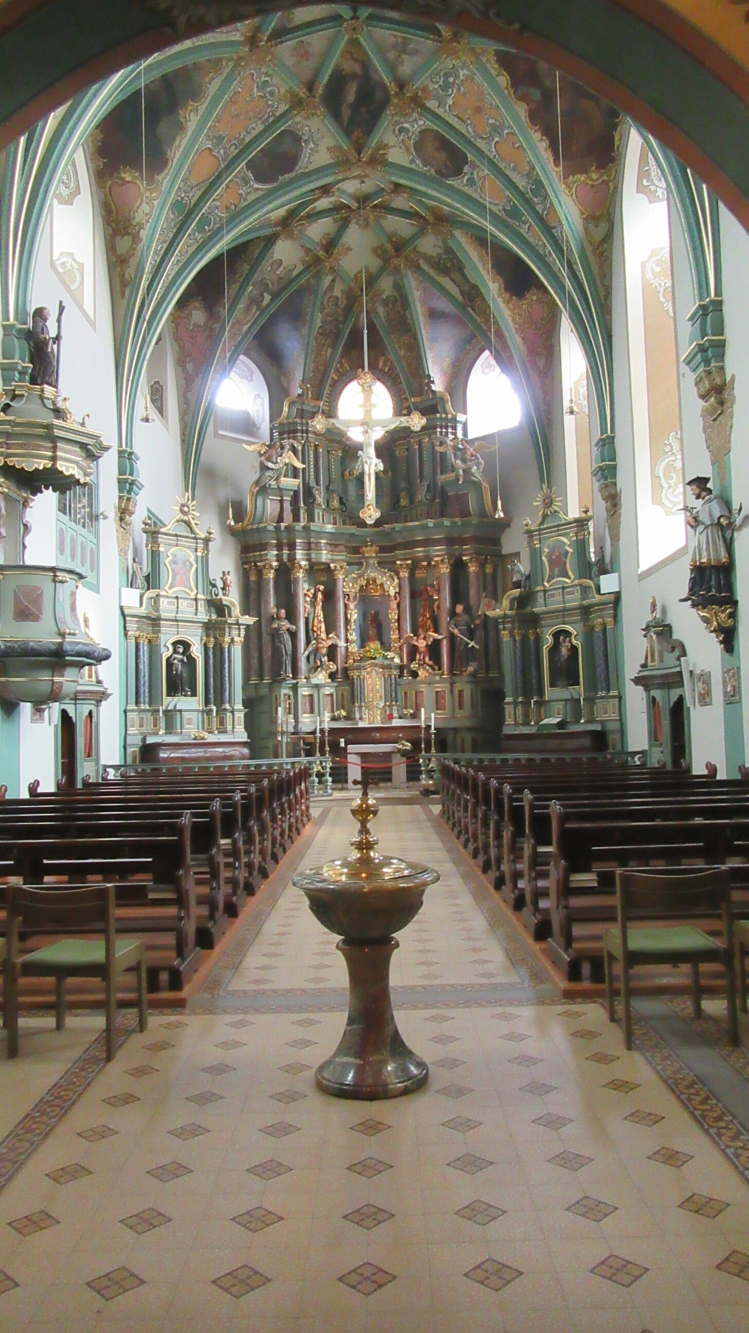 Anyways, the town is very small and 99% residential, with virtually nothing to do, as my prior research indicated. By the time I got off the bus I had already done everything there is…mostly. I have been carrying around a copy of my family tree and photo copies of the old old baptism records the church has which date back to my great great great grandfather, Phillipi Zimmermann from 1830. I got off the bus and was wondering where in the heck the church was, I turned around and saw it right there next to the bus stop. Surprisingly it is quite large and has a very nice interior. I went inside to see if I could find the pastor or keeper of the records, and sadly was never able to find anyone. I knocked around on different doors, including the office, and other side doors. Wah. I came back several times, but still nobody came.