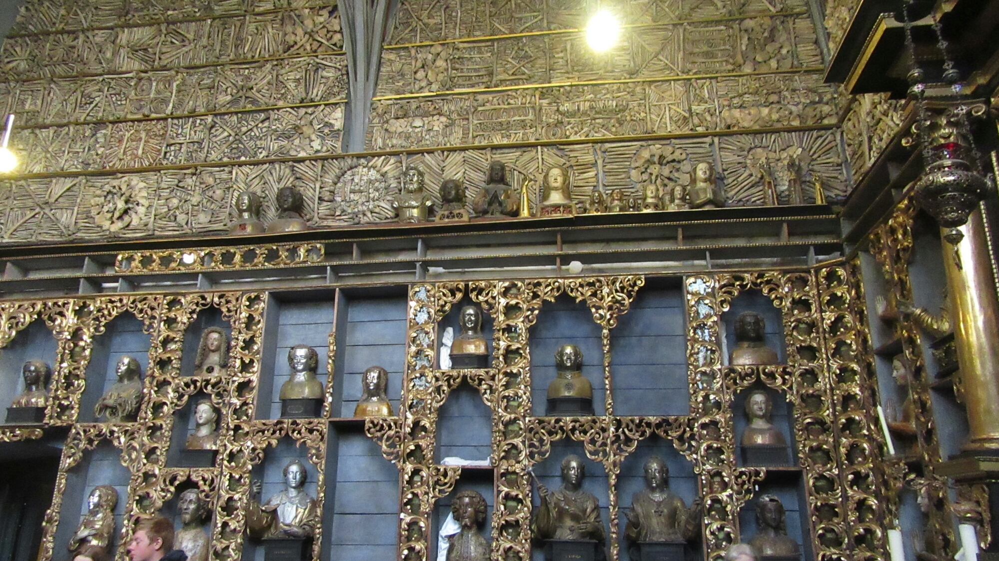 A walking day in Colonia Claudia Ara Agrippinensium (the old Roman name for Cologne). It started with where I left off yesterday saying I would come back to something morbid, which I certainly did. A church, St. Ursula’s Church. What’s so creepy about this church? The Golden Chamber, a room with lots of gold. What’s creepy about the gold? Nothing, its the bones and skulls the rest of the room is decorated in. Thosands of human bones are adorned on the walls, in artistic patterns. With dozens of skulls, with red decorative cloths masking the ‘faces’ of the skulls. There are carvings and busts of religious figures, with a pile of their bones undernearth in a case with viewing window, it was crazy. The bones are said to be of St. Ursula and up o 11,000 virgin who were killed by the huns. The church is built on an old Roman basilica, and the room was currently be renovated or fixed up, as many of the skulls were gone, and many wrapped in paper.