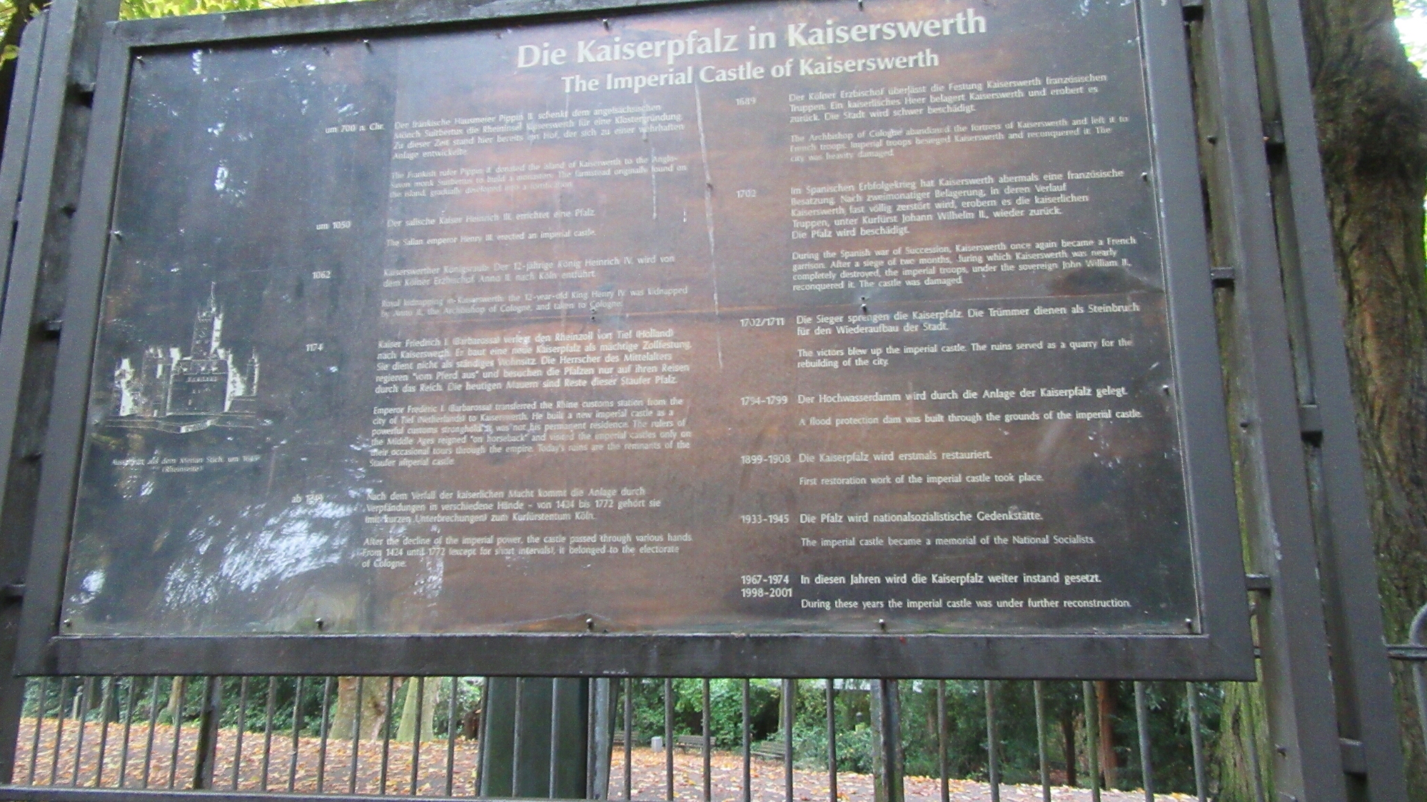 In the morning I took subway ride a ways north to a town called Kaiserswerth (kaisers – vare – t). There is a neat historical totally ruined 1000 year old remnants of an old castle called Kaiserpfalz. It’s not super huge and amazing but it was cool. Just neat ruins on the Rhine. There were a few signs explaining where and what things were.