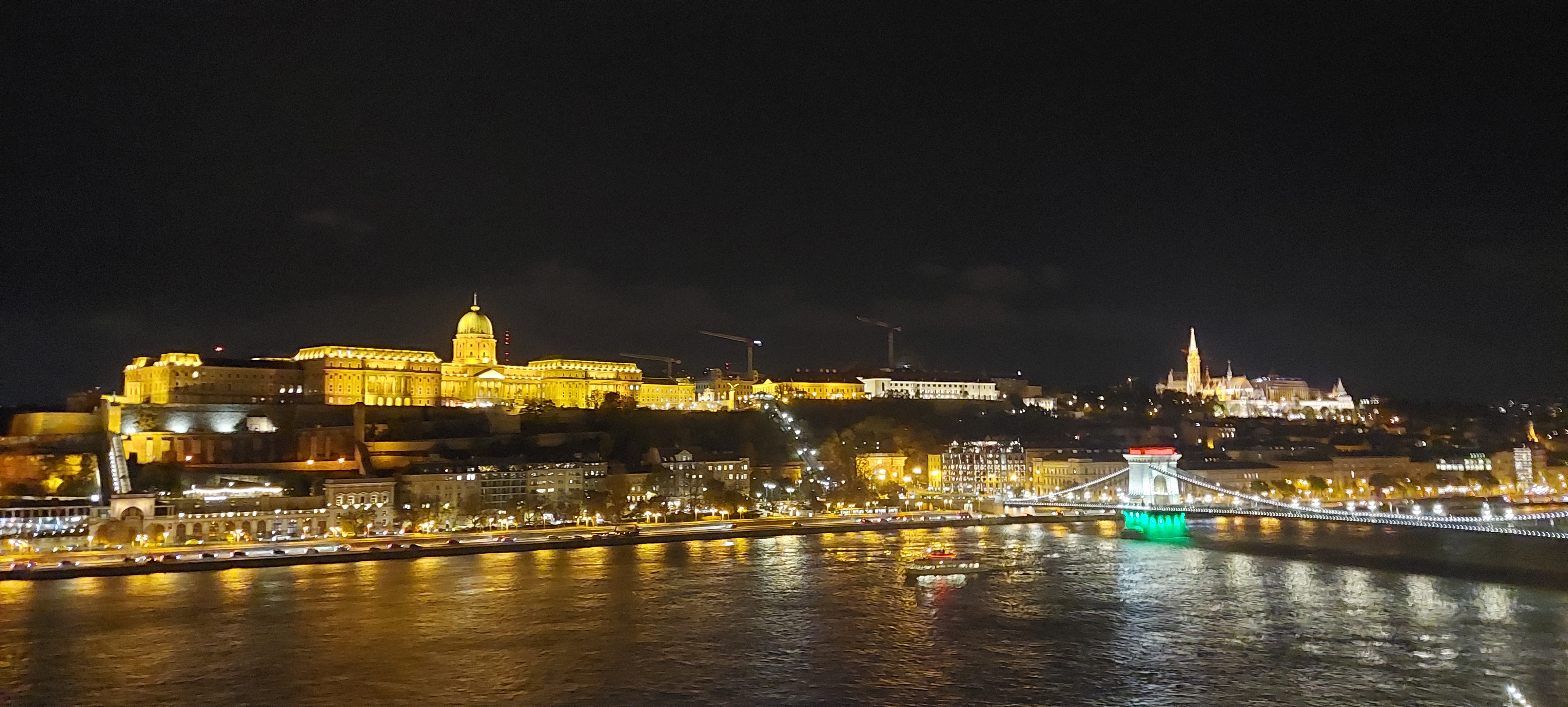 Budapest Palace on the left across the Danube River, and St. Mathias Church tower poking up on the right.